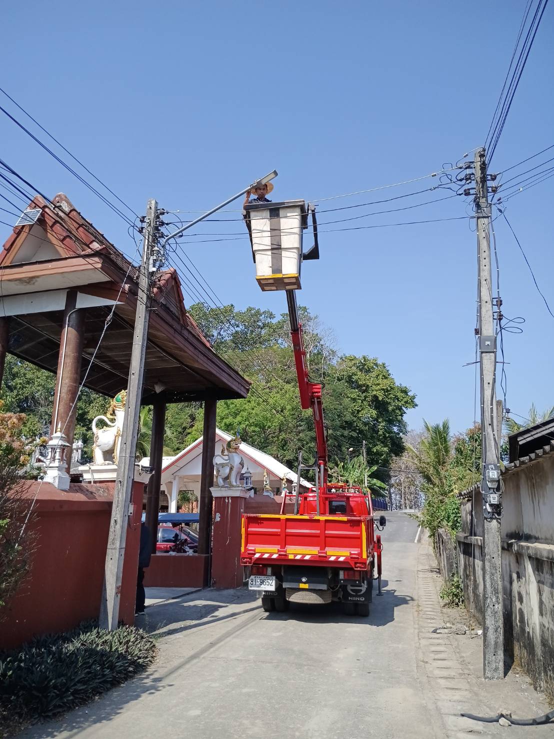 กองช่าง ดำเนินการซ่อมไฟกิ่ง บ้านป่ายางมนใหม่ หมู่ที่ 5 ในวันที่ 23 มกราคม 2569