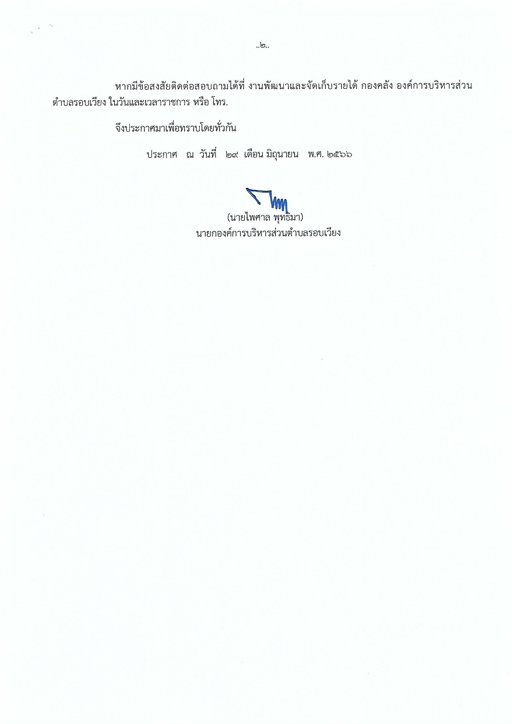 ประกาศ การขยายกำหนดเวลาดำเนินการจัดเก็บภาษีที่ดินและสิ่งปลูกสร้าง (ครั้งที่ 2) ประจำปี พ.ศ.2566
