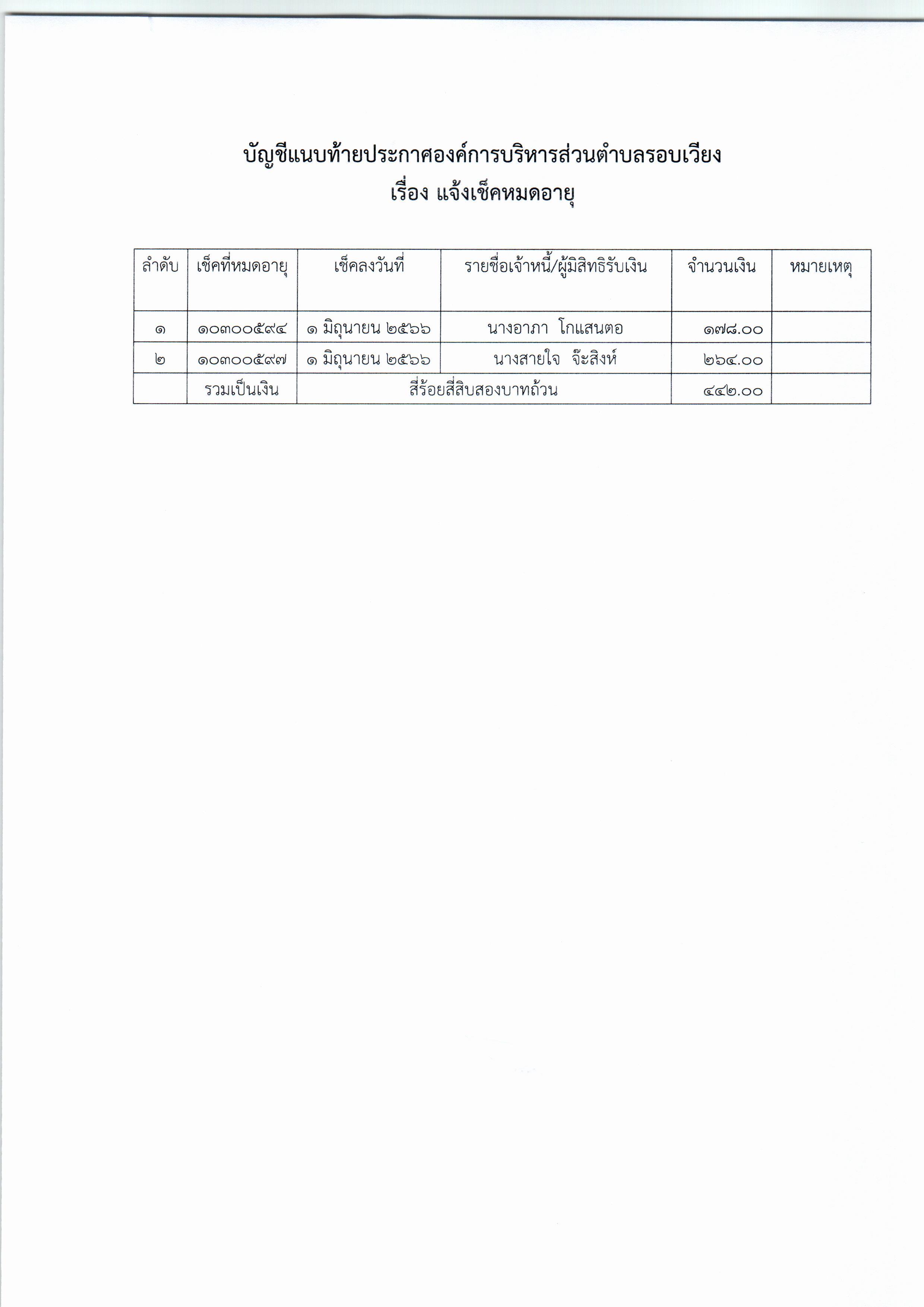 ประชาสัมพันธ์ประกาศ เรื่อง แจ้งรายชื่อเช็คหมดอายุ