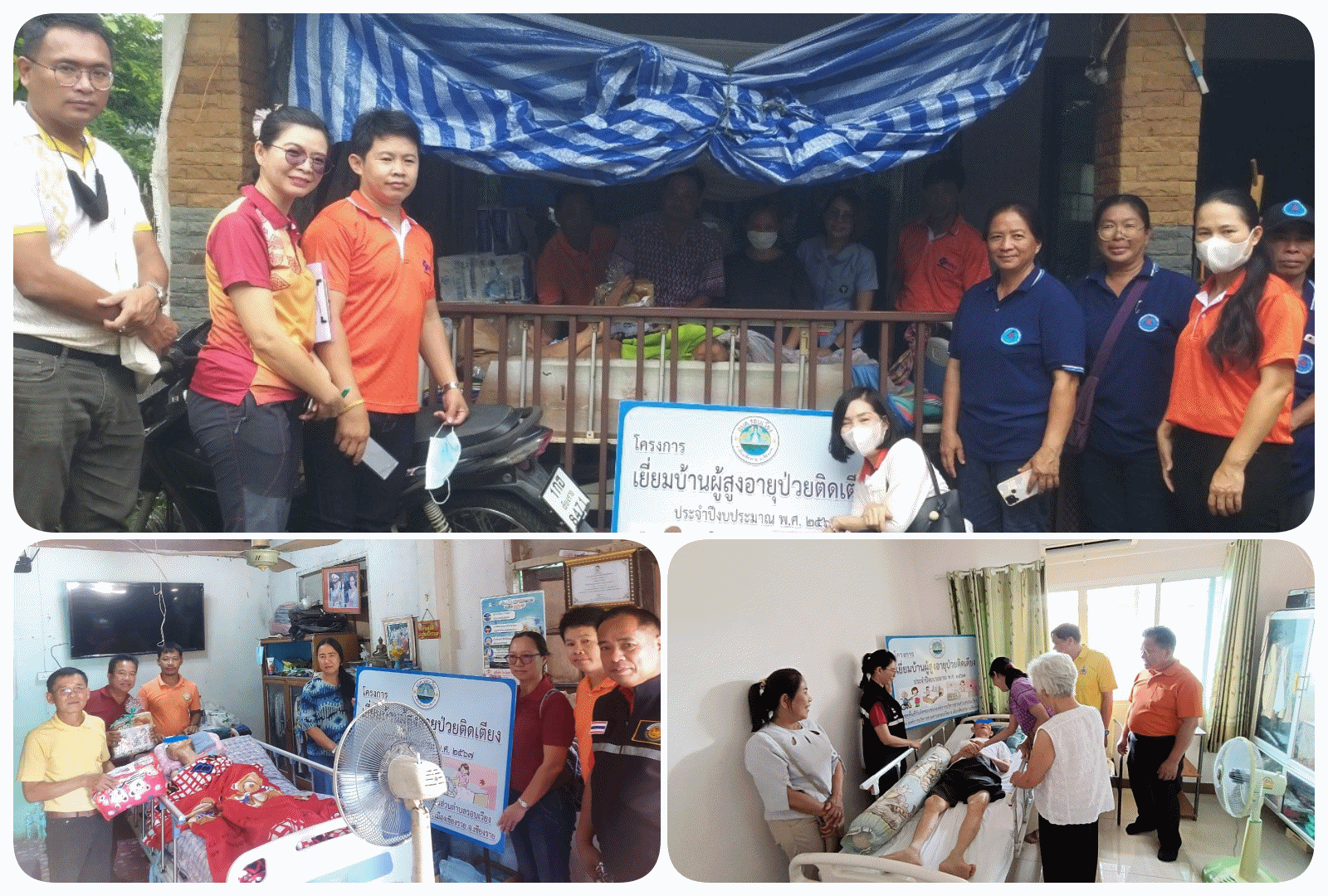 | วัตถุประสงค์ | 1 เพื่อให้ผู้สูงอายุที่ป่วยติดเตียง มีความรู้ในการดูแลสุขภาพในชีวิตประจำวัน 2 เพื่อให้ผู้สูงอายุที่ป่วยติดเตียง มีความเชื่อมั่นในคุณค่าของตัวเอง 3 เพื่อบริการออกเยี่ยมบ้านและดูแลกลุ่มผู้สูงอายุที่ป่วยติดเตียงและสร้างกำลังใจแก่กลุ่มเป้าหมาย |