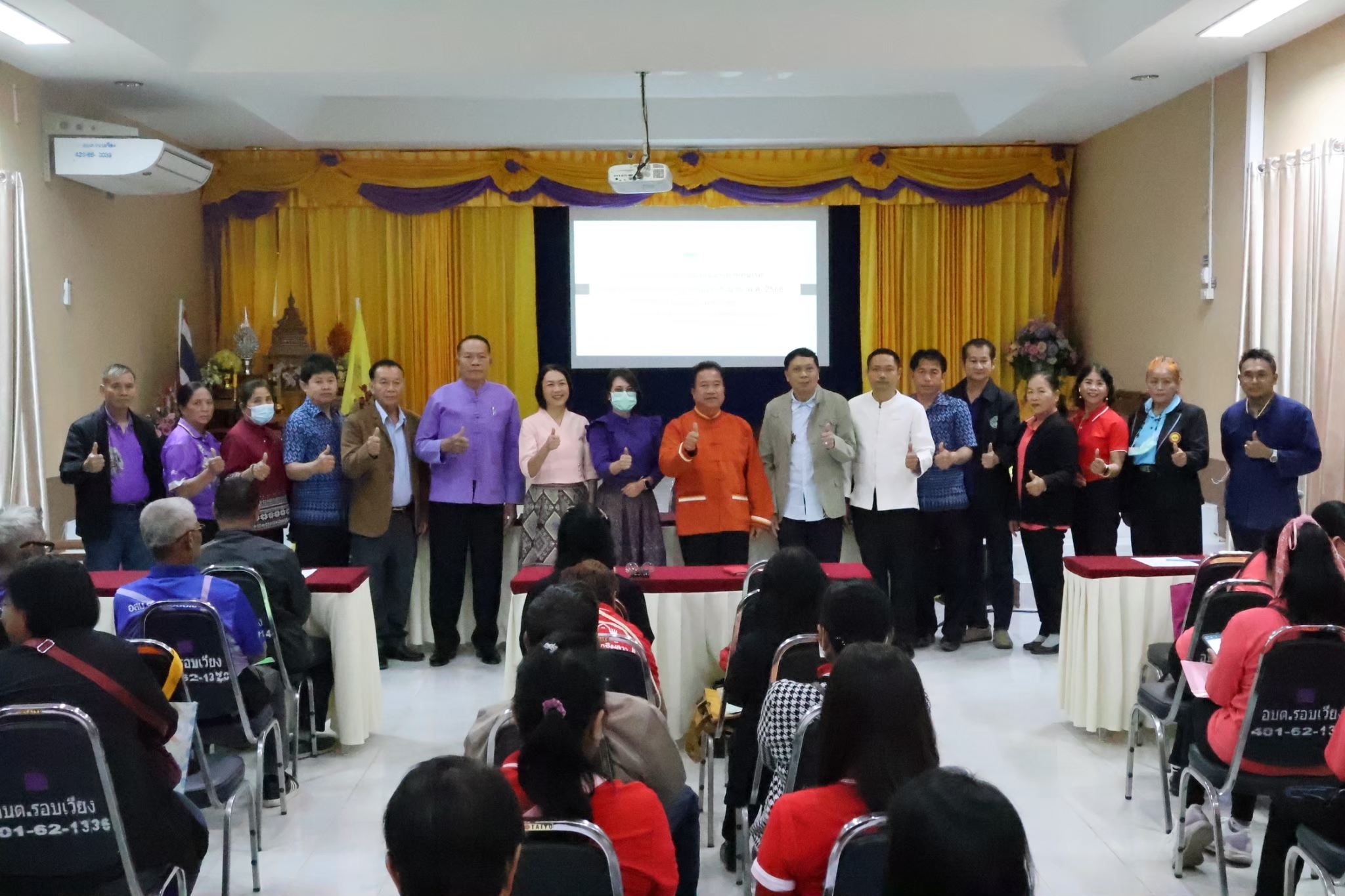 | ผลการดำเนินโครงการ | โครงการฝึกปฏิบัติการป้องกันและควบคุมโรคสำหรับแกนนำด้านสุขภาพ ประจำปีงบประมาณ พ.ศ. 2568 เมื่อวันที่ 14 กุมภาพันธ์ 2568 ณ ห้องประชุมพวงแสด 1 องค์การบริหารส่วนตำบลรอบเวียง มีผู้เข้าร่วมประกิจกรรม จำนวน 66 คน - สถานการรณ์การแพร่ะบาดแลการแพร่ระบาดของเชื้อซื้อโนโรไวรัส - สถานการณ์และแนวทางการเฝ้าระวังป้องกันควบคุมการแพร่ระบาดโรคระบาดสัตว์ปีก - สถานการณ์และแนวทางเฝ้าระวังป้องกันการแพร่ระบาดการดำเนินงานตามมาตรการเฝ้าระวังโรคไข้เลือดออก